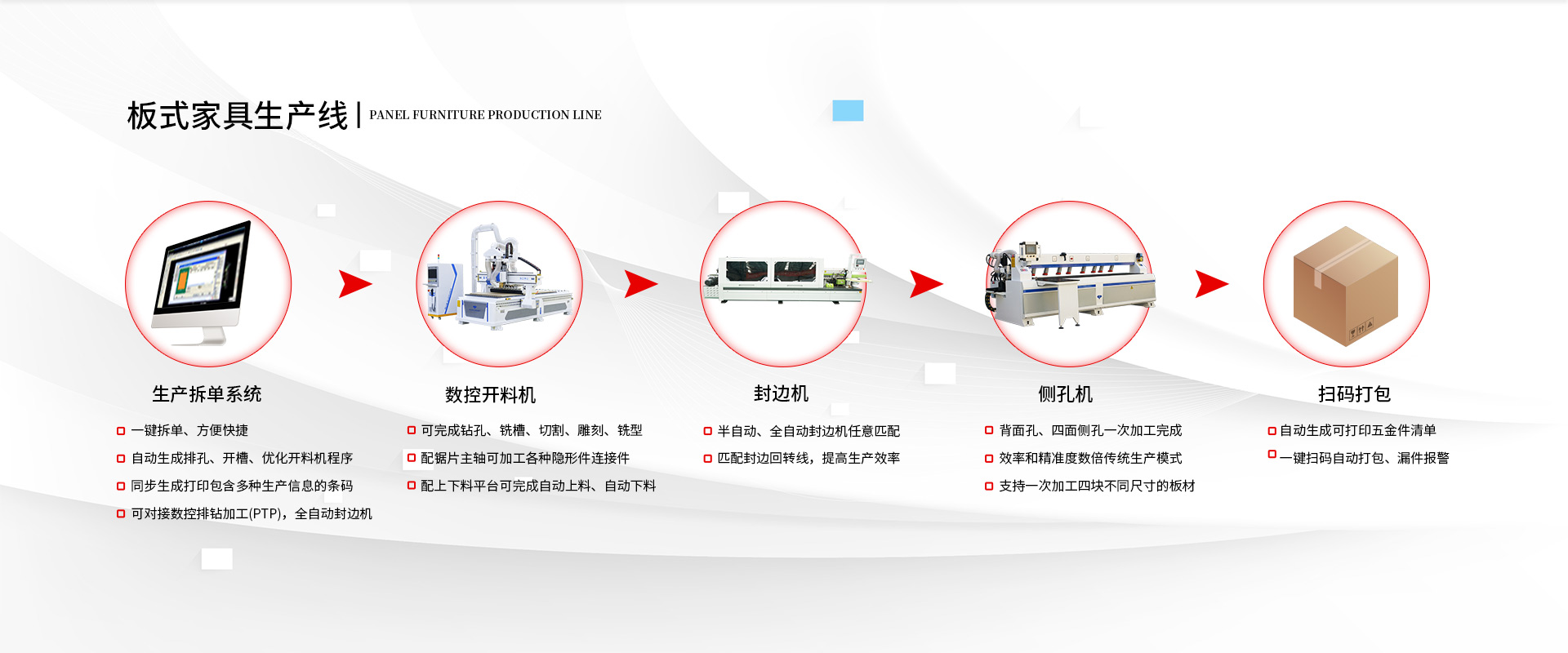板式家具生產(chǎn)線具有方便、高效、省時、省力等優(yōu)勢,因此深受家具廠老板的喜愛,那站在客戶的角度來看,如何才能選擇到效果好的家具生產(chǎn)線呢?... 閱讀詳情 >>全自動開料機在使用的時候,這些細節(jié)一定要注意